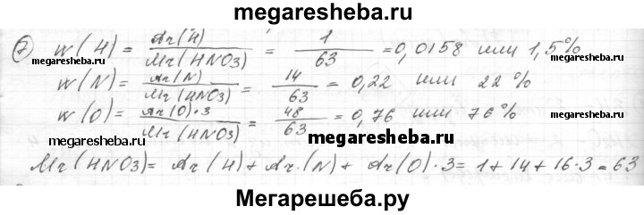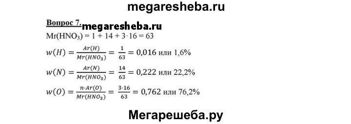 7. Вычислите массовые доли элементов в азотной кислоте HNO3.