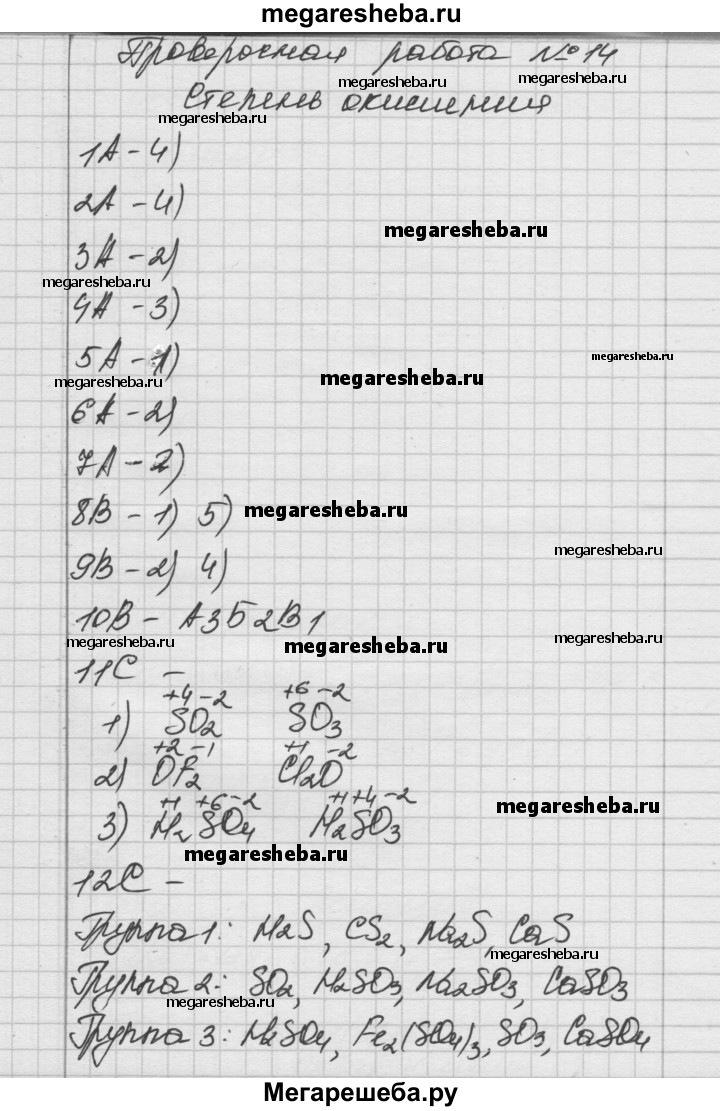 Подробный решебник (ГДЗ) по Химии за 8 (восьмой) класс тетрадь для оценки качества знаний - готовый ответ проверочная работа - 14. Авторы учебника: Габриелян, Купцова. Издательство: Дрофа 2016-2018.