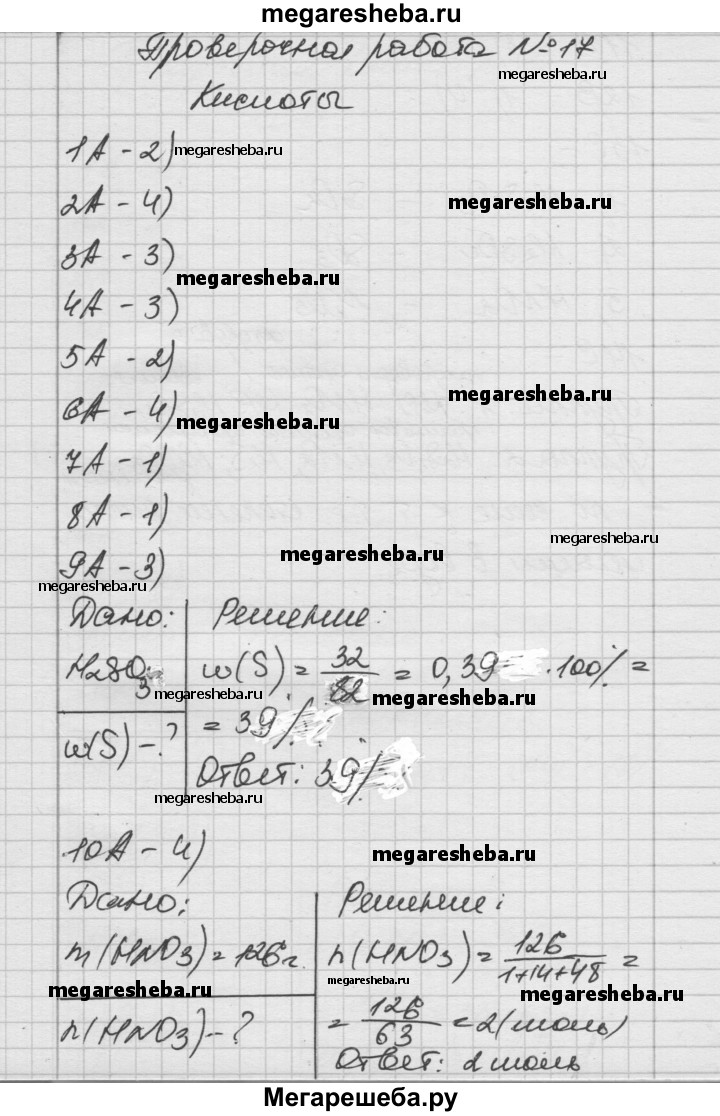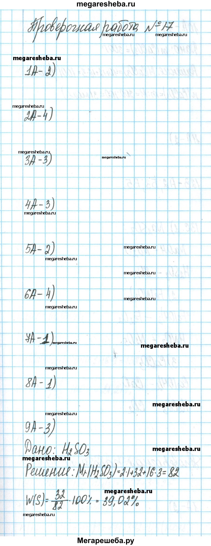 Подробный решебник (ГДЗ) по Химии за 8 (восьмой) класс тетрадь для оценки качества знаний - готовый ответ проверочная работа - 17. Авторы учебника: Габриелян, Купцова. Издательство: Дрофа 2016-2018.