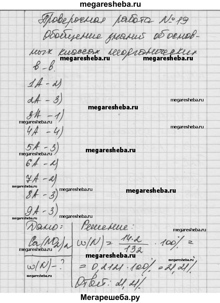 Подробный решебник (ГДЗ) по Химии за 8 (восьмой) класс тетрадь для оценки качества знаний - готовый ответ проверочная работа - 19. Авторы учебника: Габриелян, Купцова. Издательство: Дрофа 2016-2018.