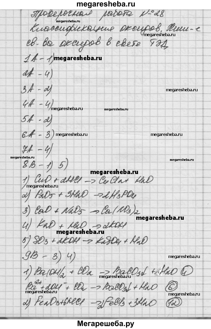 Подробный решебник (ГДЗ) по Химии за 8 (восьмой) класс тетрадь для оценки качества знаний - готовый ответ проверочная работа - 28. Авторы учебника: Габриелян, Купцова. Издательство: Дрофа 2016-2018.