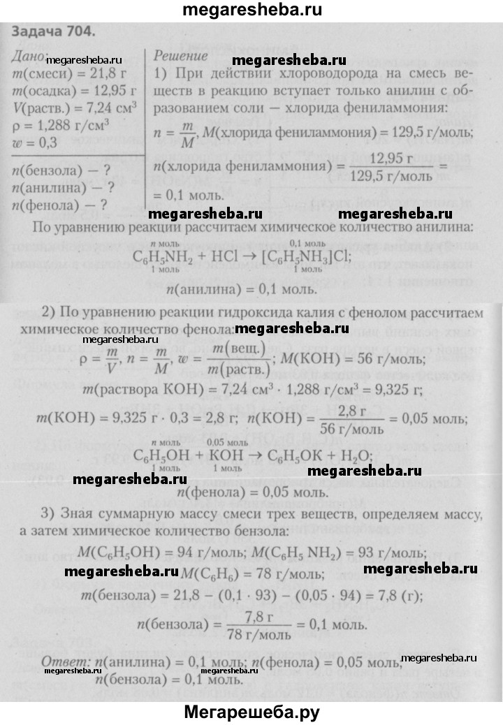 Подробный решебник (ГДЗ) по Химии за 11 (одиннадцатый) класс сборник задач - готовый ответ номер - 704. Авторы учебника: Шарапа, Ельницкий. Издательство: Народная асвета 2010.