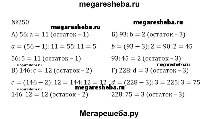 Подробный решебник (ГДЗ) по Математике за 5 (пятый) класс - готовый ответ глава 1 - 1.250 (250). Авторы учебника: Никольский, Потапов, Решетников, Шевкин, Базовый уровень. Издательство: Просвещение 2016-2023.
