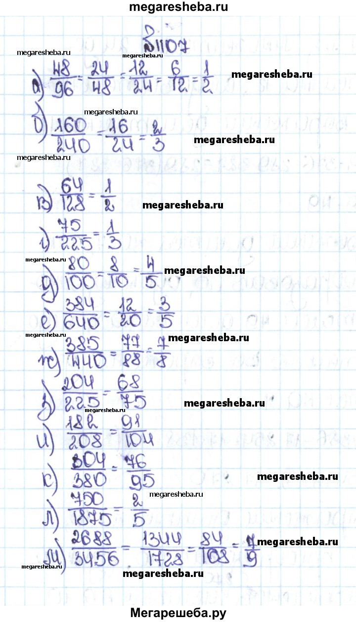 Подробный решебник (ГДЗ) по Математике за 5 (пятый) класс - готовый ответ задания для повторения - 14 (1107). Авторы учебника: Никольский, Потапов, Решетников, Шевкин, Базовый уровень. Издательство: Просвещение 2016-2023.