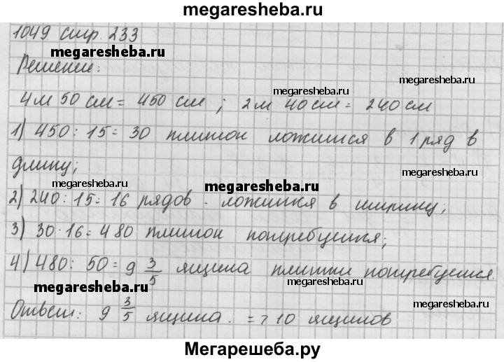 Подробный решебник (ГДЗ) по Математике за 5 (пятый) класс - готовый ответ глава 4 - 4.322 (1049). Авторы учебника: Никольский, Потапов, Решетников, Шевкин, Базовый уровень. Издательство: Просвещение 2016-2023.