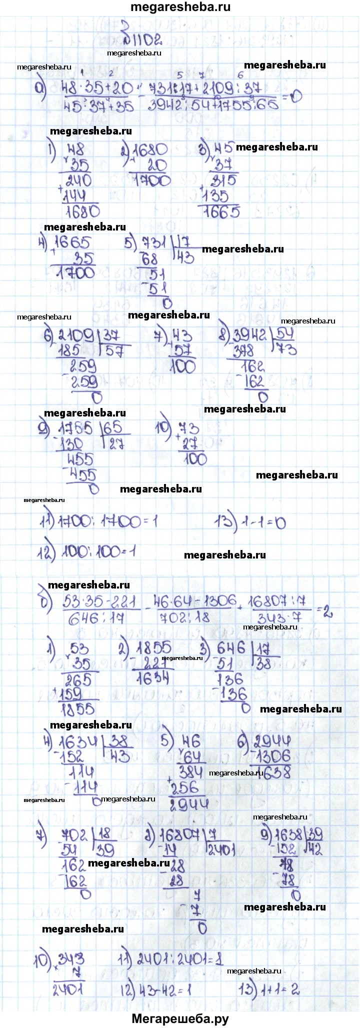 Подробный решебник (ГДЗ) по Математике за 5 (пятый) класс - готовый ответ задания для повторения - 9 (1102). Авторы учебника: Никольский, Потапов, Решетников, Шевкин, Базовый уровень. Издательство: Просвещение 2016-2023.