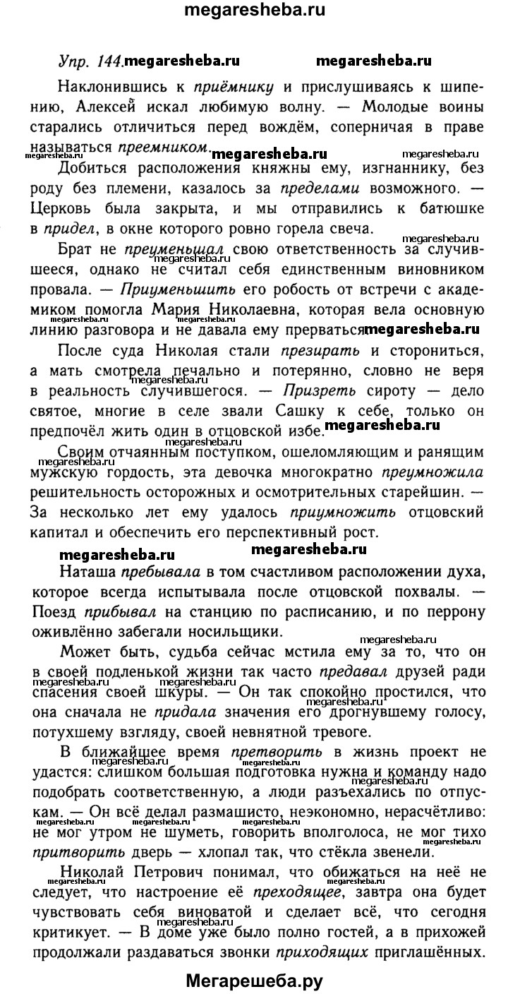 Подробный решебник (ГДЗ) по Русскому языку за 10‐11 (десятый‐одиннадцатый) класс - готовый ответ учебник 2019. упражнение - 144. Авторы учебника: Гольцова, Шамшин, Мищерина, Базовый уровень. Издательство: Русское слово 2019.