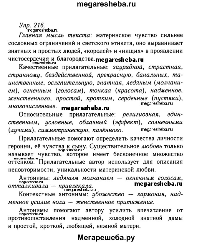 Подробный решебник (ГДЗ) по Русскому языку за 10‐11 (десятый‐одиннадцатый) класс - готовый ответ учебник 2019. упражнение - 216. Авторы учебника: Гольцова, Шамшин, Мищерина, Базовый уровень. Издательство: Русское слово 2019.