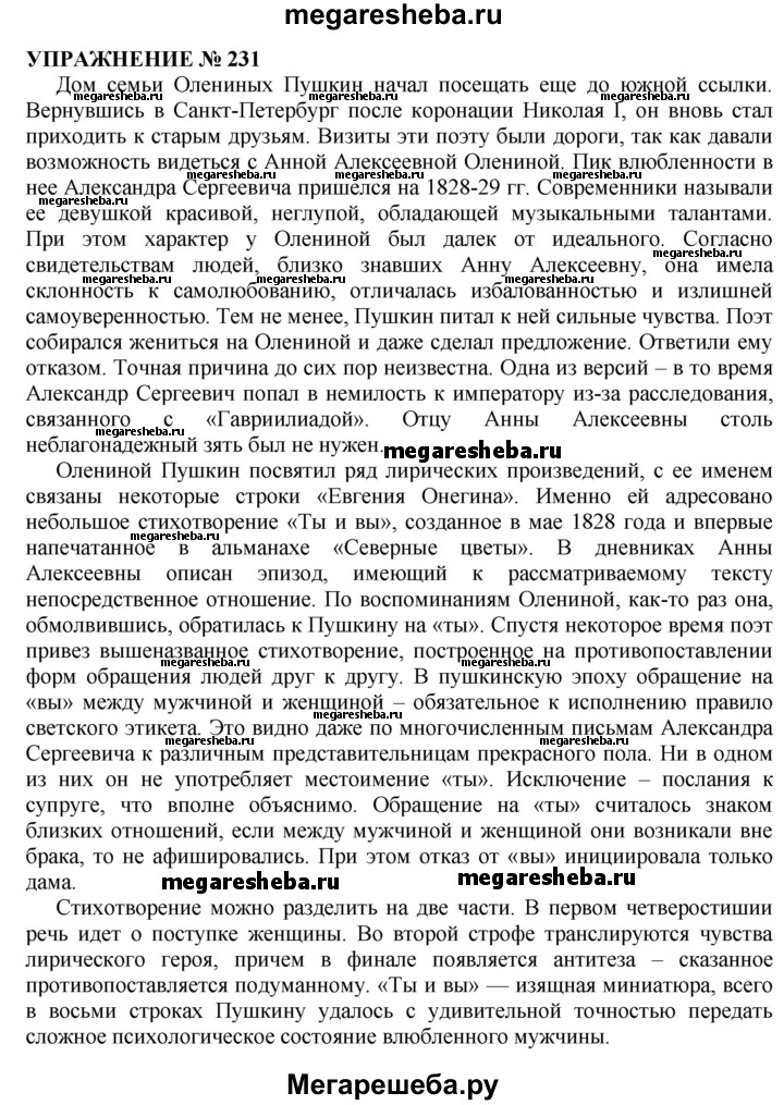 Подробный решебник (ГДЗ) по Русскому языку за 10‐11 (десятый‐одиннадцатый) класс - готовый ответ учебник 2019. упражнение - 231. Авторы учебника: Гольцова, Шамшин, Мищерина, Базовый уровень. Издательство: Русское слово 2019.