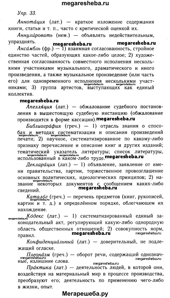 Подробный решебник (ГДЗ) по Русскому языку за 10‐11 (десятый‐одиннадцатый) класс - готовый ответ учебник 2019. упражнение - 33. Авторы учебника: Гольцова, Шамшин, Мищерина, Базовый уровень. Издательство: Русское слово 2019.