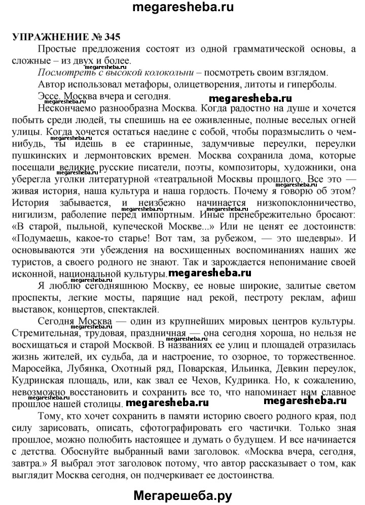 Подробный решебник (ГДЗ) по Русскому языку за 10‐11 (десятый‐одиннадцатый) класс - готовый ответ учебник 2019. упражнение - 345. Авторы учебника: Гольцова, Шамшин, Мищерина, Базовый уровень. Издательство: Русское слово 2019.