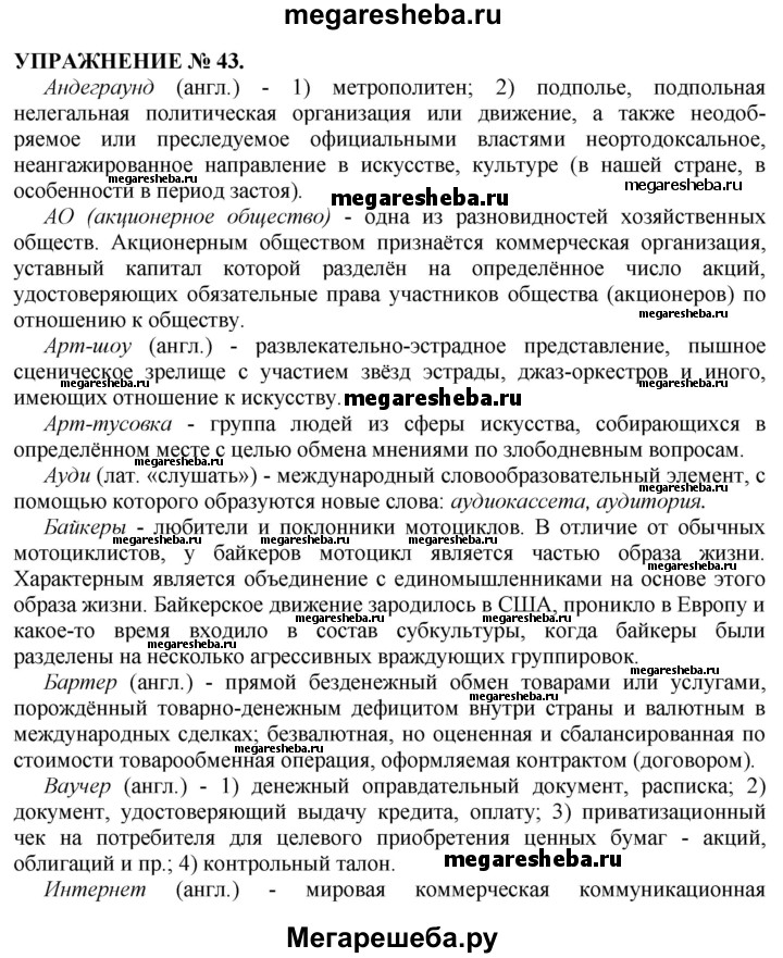 Подробный решебник (ГДЗ) по Русскому языку за 10‐11 (десятый‐одиннадцатый) класс - готовый ответ учебник 2019. упражнение - 43. Авторы учебника: Гольцова, Шамшин, Мищерина, Базовый уровень. Издательство: Русское слово 2019.