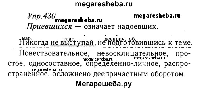 Подробный решебник (ГДЗ) по Русскому языку за 8 (восьмой) класс - готовый ответ упражнение - 430. Авторы учебника: Ладыженская, Тростенцова, Дейкина, Александрова. Издательство: Просвещение 2015.