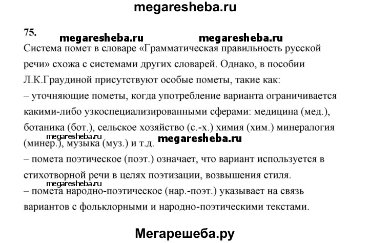Подробный решебник (ГДЗ) по Русскому языку за 9 (девятый) класс - готовый ответ упражнение - 75. Авторы учебника: Воителева, Марченко, Смирнова, Шамшин. Издательство: Русское слово 2019.